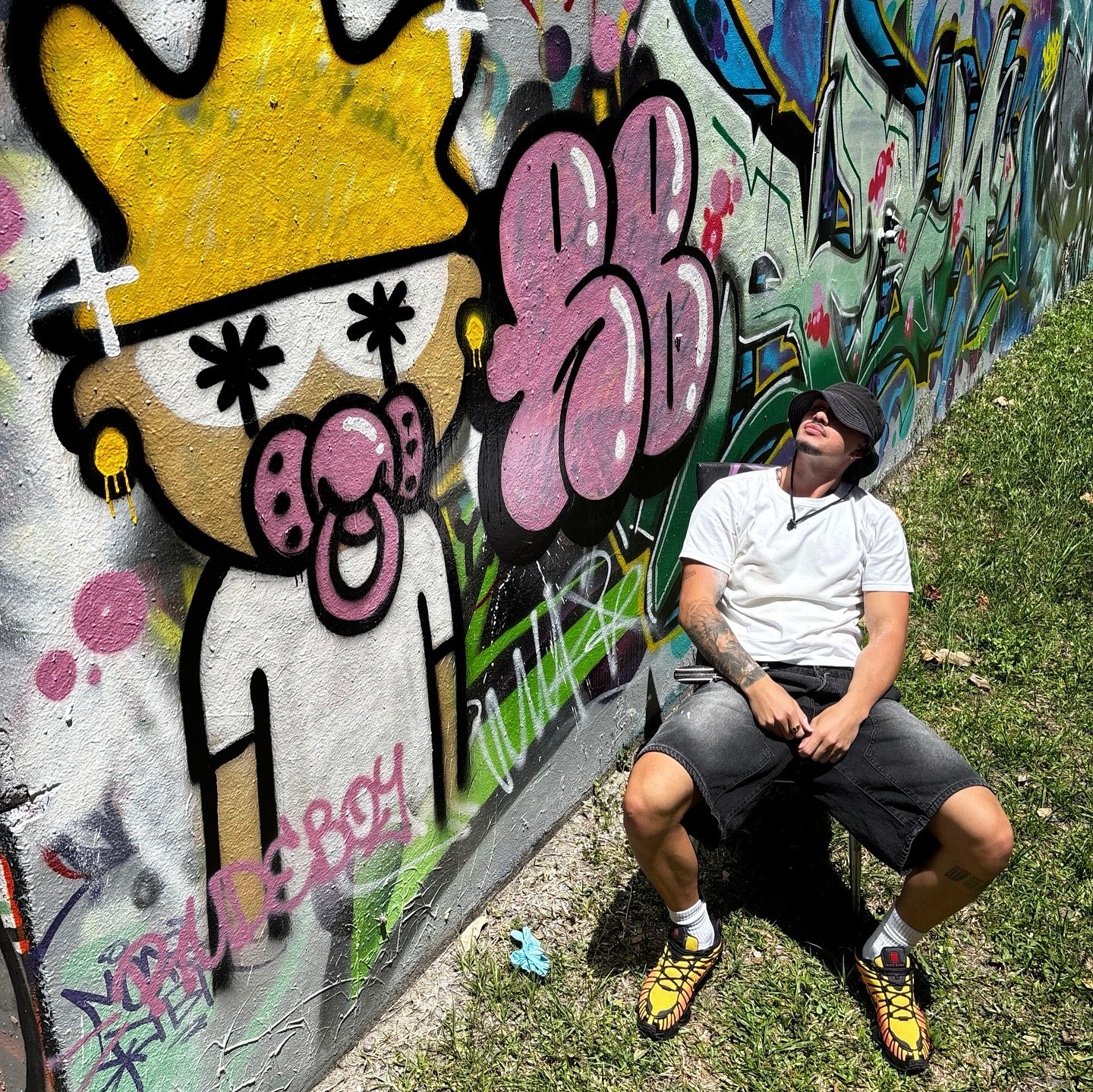 "GROWING UP I WOULD ESCAPE THE STRUGGLE THROUGH MY IMAGINATION, PROJECTING MY THOUGHTS ONTO WALLS, CANVAS, ANYTHING I COULD FIND. BEFORE I EVEN KNEW I WAS AN ARTIST, I WAS JUST A BOY TRYNA BRING COLOUR TO A COLD WORLD. THAT’S WHERE RUDEBOY WAS BORN."